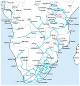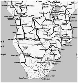 | Criadas as necessárias capacidade nos portos para transhipment e trânsito, construindo-se as linhas nos corredores até aos países vizinhos e ligando os corredores, com a inclusão de plataformas logísticas e industriais, reduzindo os custos portuários e melhorando a competitividade, os tempos de espera, facilitando também nas fronteiras a livre circulação de produtos com valor acrescentado Angolano, para acrescentar valor em Angola e ou oriundas e destinadas aos portos de Angola, poder-se-á garantir produção Angolana e competitividade para o abastecimento das populações com produtos nacionais, aproveitando a massa critica para Angola ser um hub regional que crie valor internamente, facilitando a instalação de empresas e industrias para substituir importações e exportar para os vizinhos, colocando o país no mapa do desenvolvimento logístico e económico e industrial, como grande potência logística regional. in REVISTA CARGO - Março 2011 [fonte: http://www.cargoedicoes.pt] |