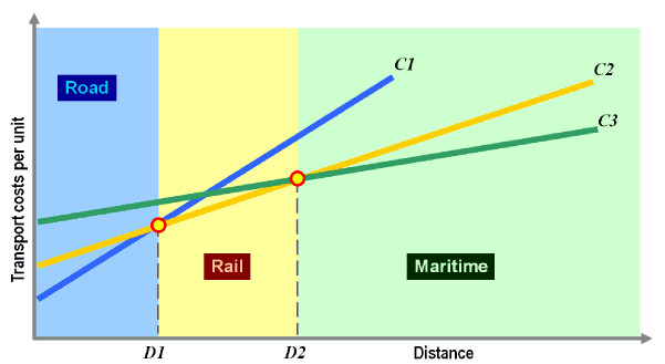 | Assim, com as restrições do investimento público, a necessidade de tornar mais competitivas as exportações portuguesas para apoiar a recuperação mais rápida da economia e cumprir os objectivos europeus de mudança modal da estrada para modos de transporte de massa mais amigos do ambiente, não nos resta alternativa senão incentivar fortemente o transporte marítimo de curta distância. Ainda existe muita capacidade nos portos para este tipo de tráfego. Trata-se de uma oportunidade única para o mar e para os portos portugueses, que num momento de forte crise económica podem ter um papel crescente e determinante na recuperação do País, reforçando a sua posição no mercado internacional de transporte, contribuindo para a sustentabilidade europeia dos transportes e do ambiente. É de lembrar que, de acordo com Rodrigue, cada modo de transporte tem diferentes funções, sendo o transporte rodoviário mais eficiente para distâncias até 500 a 700 quilómetros, a ferrovia para distâncias até 1.500 quilómetros e o transporte marítimo é o mais eficiente para distâncias superiores. |