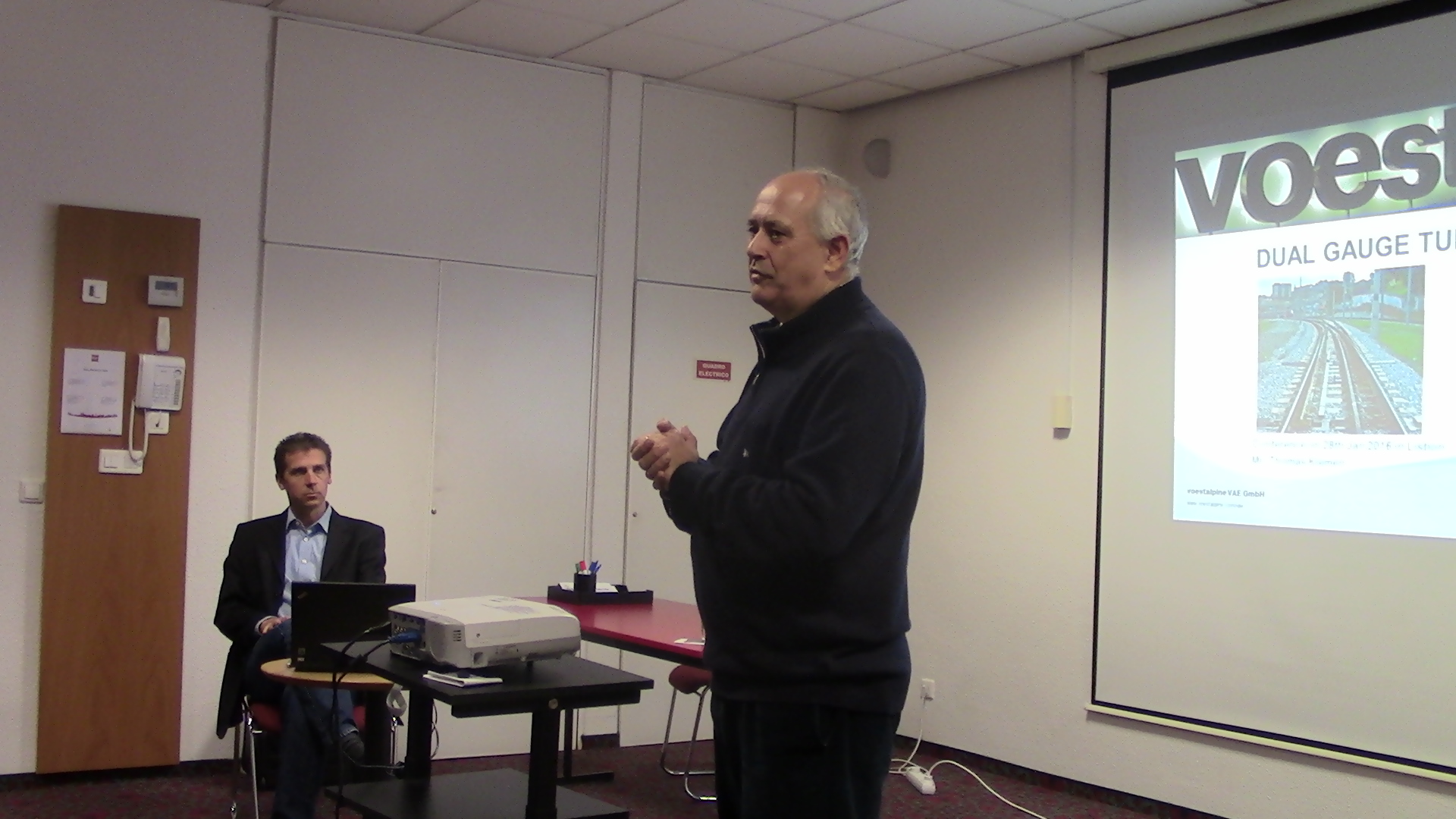 The main speaker was Eng.º Thomas Klemen of Voestalpine VAE, a 160 -year old company that manufactures devices for railway lines, including turnouts, expansion joints and 3rd rail switches. Thomas Klemen works at the engineering division of VAE for 25 years and has experience in design and laying of this type of devices.