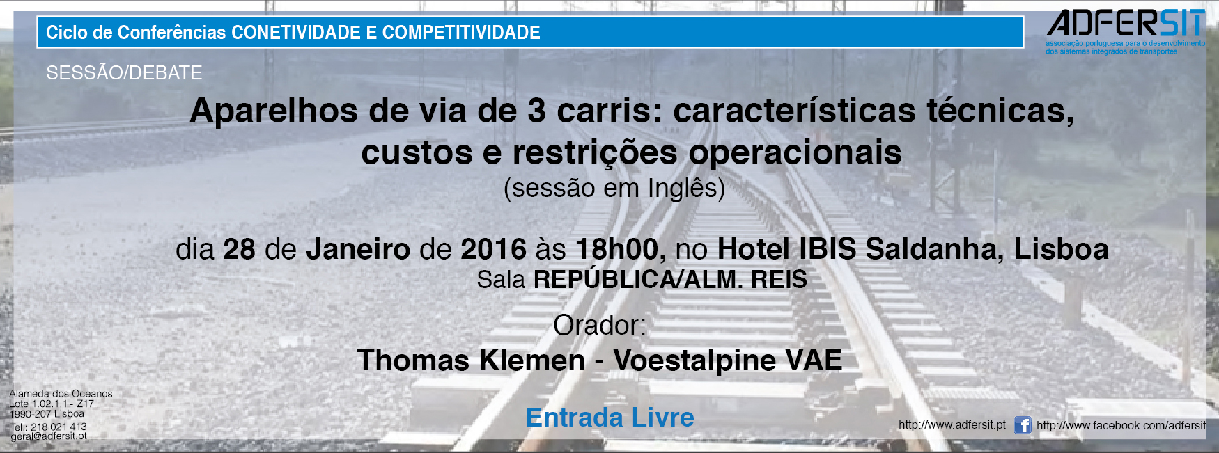 The technical conference on “Devices for lines with 3 rails: technical features, costs and operational restrictions” was held on 28 January at the Ibis Saldanha Hotel, in Lisbon.